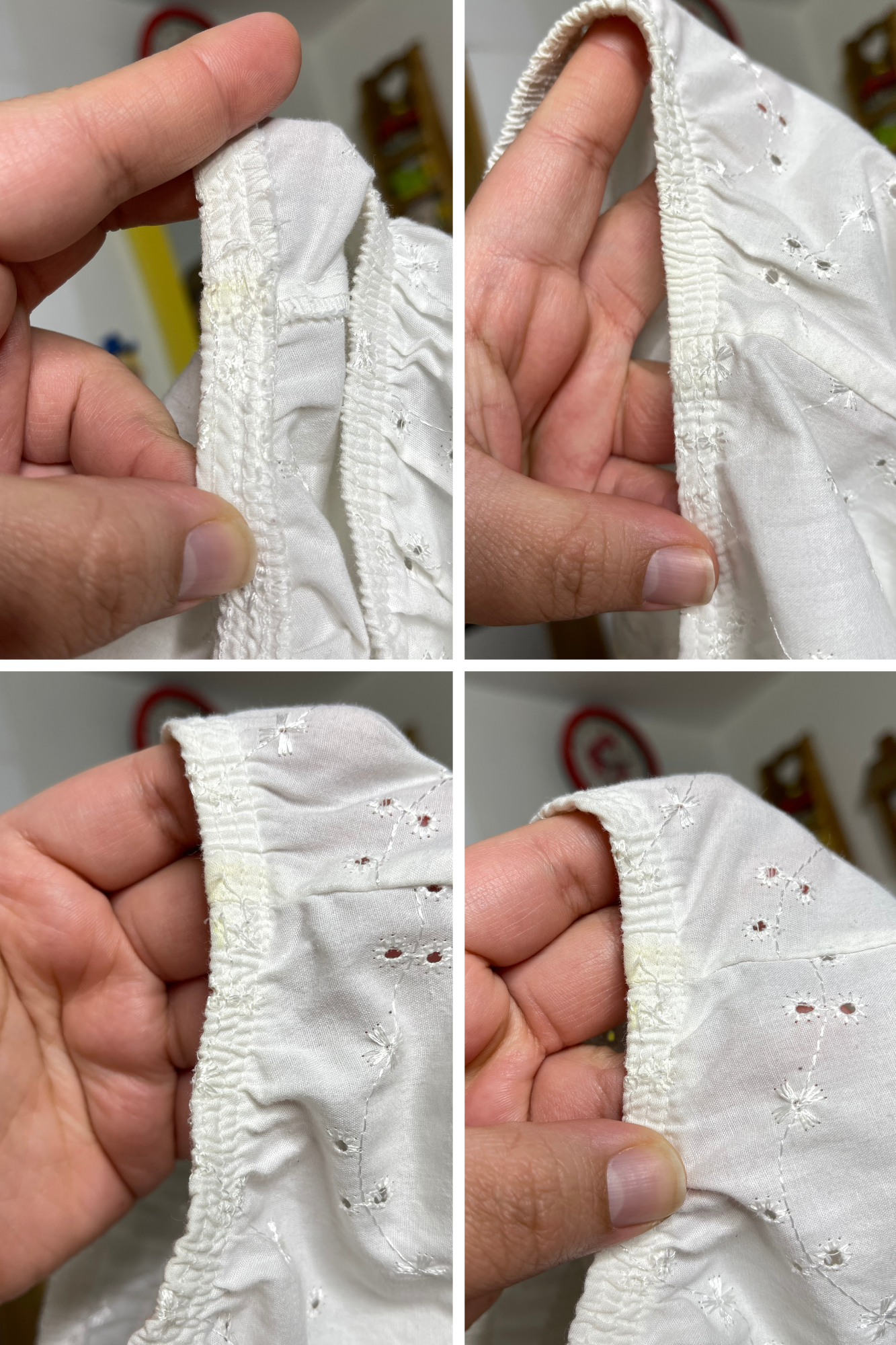 • Stretchy fabric, the top is in preloved worn condition. The top has several pilling & snags. Both pits are stained yellow, I was unable to remove the yellowing, the bust also has a small yellow stain. Please see all photos.